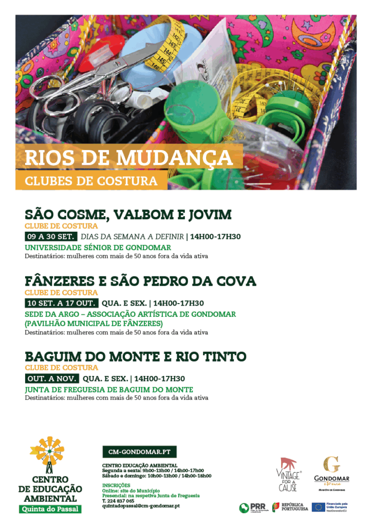 Rios de Mudança, Clubes de Costura Biblioteca de Fânzeres A partir de Setembro às 4ª e 6ª feira Tardes
