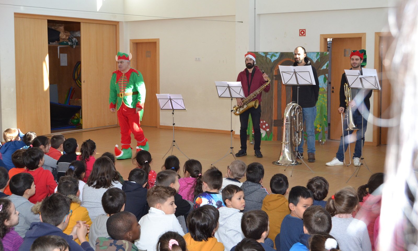 O espetáculo iniciou com a apresentação das diferentes sonoridades produzidas pelos vários instrumentos musicais de uma Banda, seguidamente os nossos meninos puderam interagir, cantando as músicas alusivas a esta Quadra Natalícia.