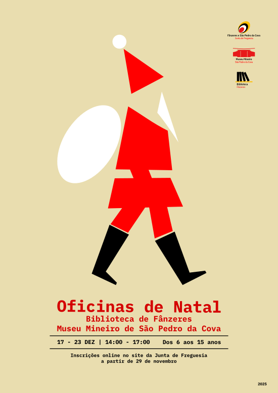Estas Oficinas destinam-se a crianças dos 6 aos 15 anos (6 anos no ato da inscrição e 15 anos até 31 de dezembro de 2025) e realizam-se, em simultâneo, na Biblioteca de Fânzeres e no Museu Mineiro de São Pedro da Cova, de 17, 18, 19, 22 e 23 de dezembro de 2025.