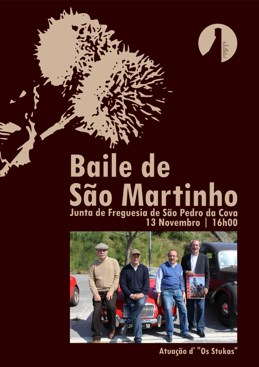 Convidamos Vª Exª a estar presente no Baile de São Martinho, que terá lugar no próximo dia 13 de novembro, pelas 16h00, no auditório da Junta de Freguesia, em São Pedro da Cova. Este baile será abrilhantado pelo conjunto de ritmos modernos “Os Stukas”, considerado o mais antigo conjunto em atividade do concelho de Gondomar. O acesso a este Baile será exclusivo a pares, sendo a entrada limitada à lotação disponível. Está previsto um pequeno magusto e um momento de solidariedade com a Zorra.