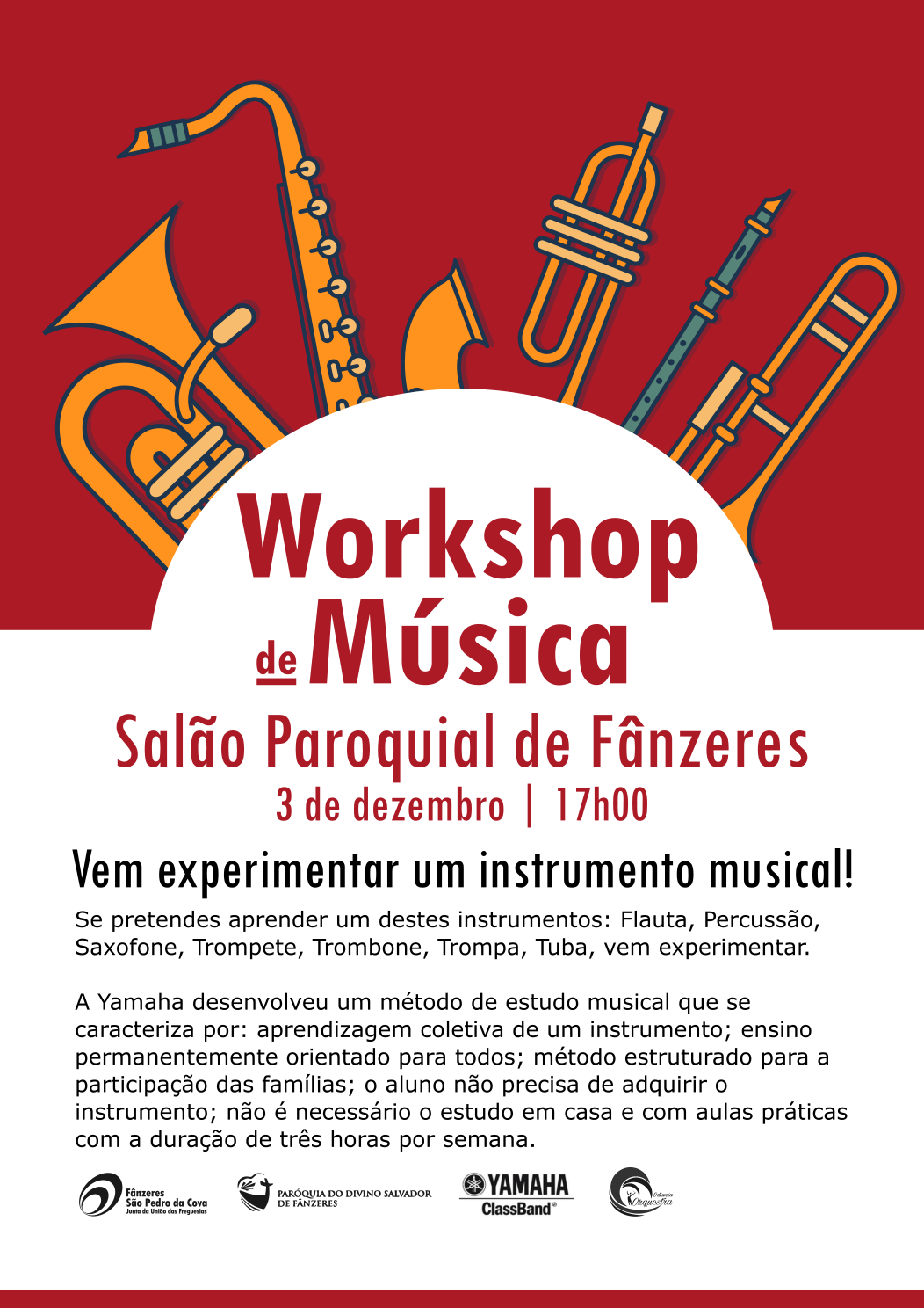 Se pretendes aprender um destes instrumentos: Flauta, Percussão, Saxofone, Trompete, Trombone, Trompa, Tuba, vem experimentar.