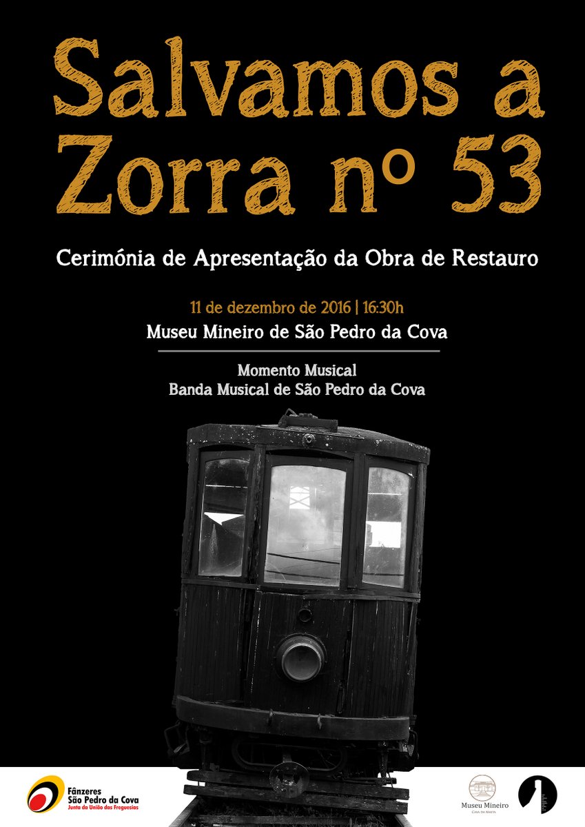 Neste sentido, a Junta da União das Freguesias de Fânzeres e São Pedro da Cova e a Liga de Amigos do Museu Mineiro de São Pedro da Cova convidam a população a estar presente na Cerimónia de Apresentação da Obra de Restauro da Zorra n.º 53, a realizar no próximo dia 11 de dezembro, pelas 16h30, no Museu Mineiro de São Pedro da Cova. Mais informamos que a Cerimónia contará com a atuação da Banda Musical de São Pedro da Cova.